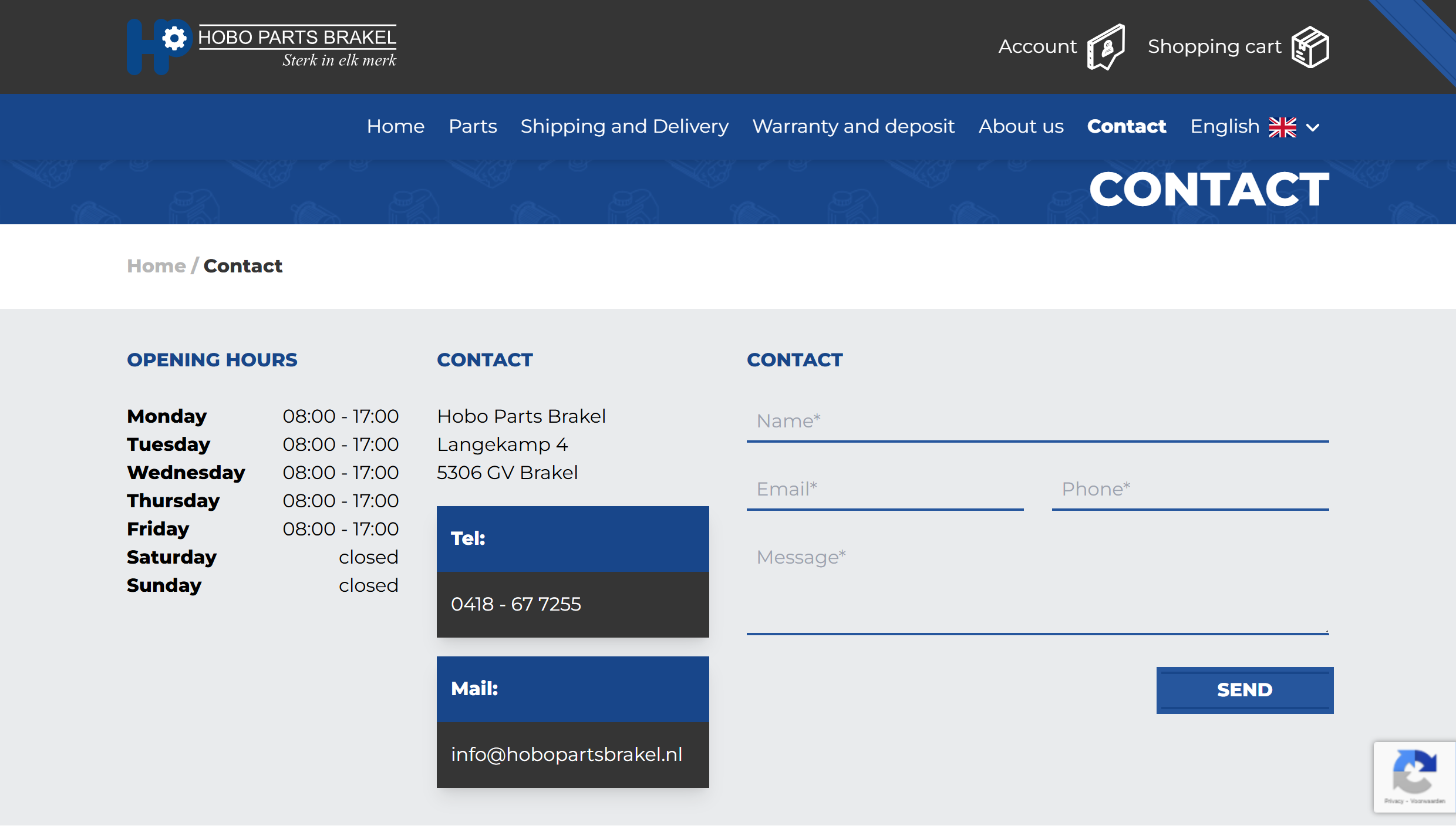 Feel free to contact us at info@hobopartsbrakel.nl – we're here for you!